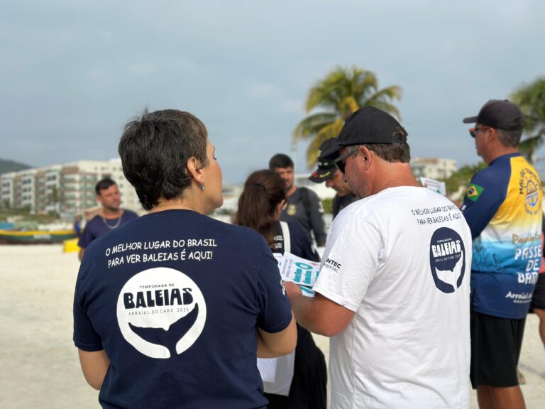 Ação da FUNTEC Ambiental orienta embarcações sobre regras de navegação responsável durante a temporada de baleias-jubarte em Arraial do Cabo