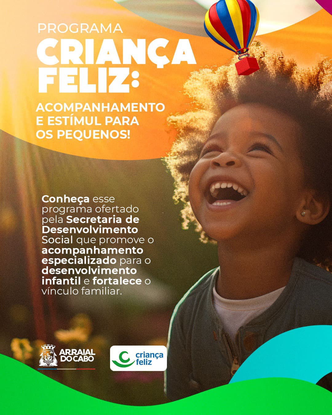 A Prefeitura de Arraial do Cabo em parceria com o Governo do Estado do Rio de janeiro, oferece ao município o Programa Criança Feliz, uma iniciativa que visa acompanhar de forma especializada o desenvolvimento das crianças de zero aos três anos, gestantes e crianças de até seis anos dentre as famílias participantes do Benefício de Prestação Continuada (BPC).