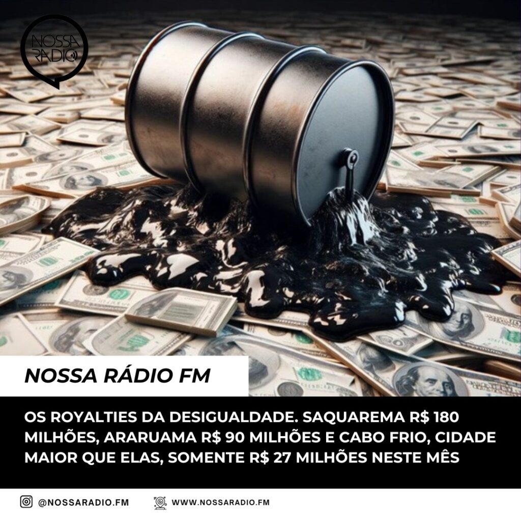 Os Royalties da desigualdade. Saquarema R$ 180 milhões, Araruama R$ 90 milhões e Cabo Frio, cidade maior que elas, somente R$ 27 milhões neste mês