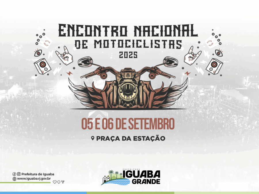 Nos dias 05 e 06 de setembro, Iguaba Grande será o ponto de encontro de motociclistas de todo o Brasil para a edição nacional do Encontro de Motociclistas, que acontecerá no Espaço de Eventos da Praça da Estação. A expectativa será receber cerca de 300 moto clubes, reunindo apaixonados por duas rodas de diferentes regiões do país.
