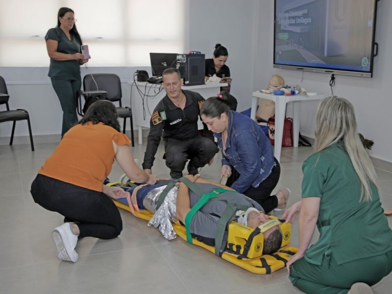 Durante o treinamento, os participantes revisaram protocolos essenciais de atendimento, incluindo avaliação da segurança da cena, identificação e abordagem inicial ao politrauma, manuseio de vias aéreas e classificação de risco. Também foram abordadas técnicas de controle de hemorragia exsanguinante, além de procedimentos como imobilização ortopédica, pranchamento, PAF, PAB e orientações finais sobre condução segura do atendimento.