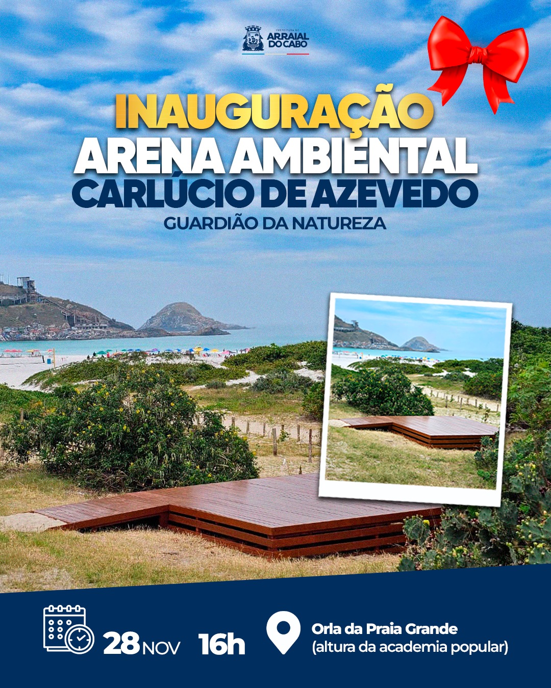 Na sexta-feira (28), às 16h, a Prefeitura inaugura a Arena Ambiental Carlúcio de Azevedo – Guardião da Natureza, na orla da Praia Grande (altura da academia popular).