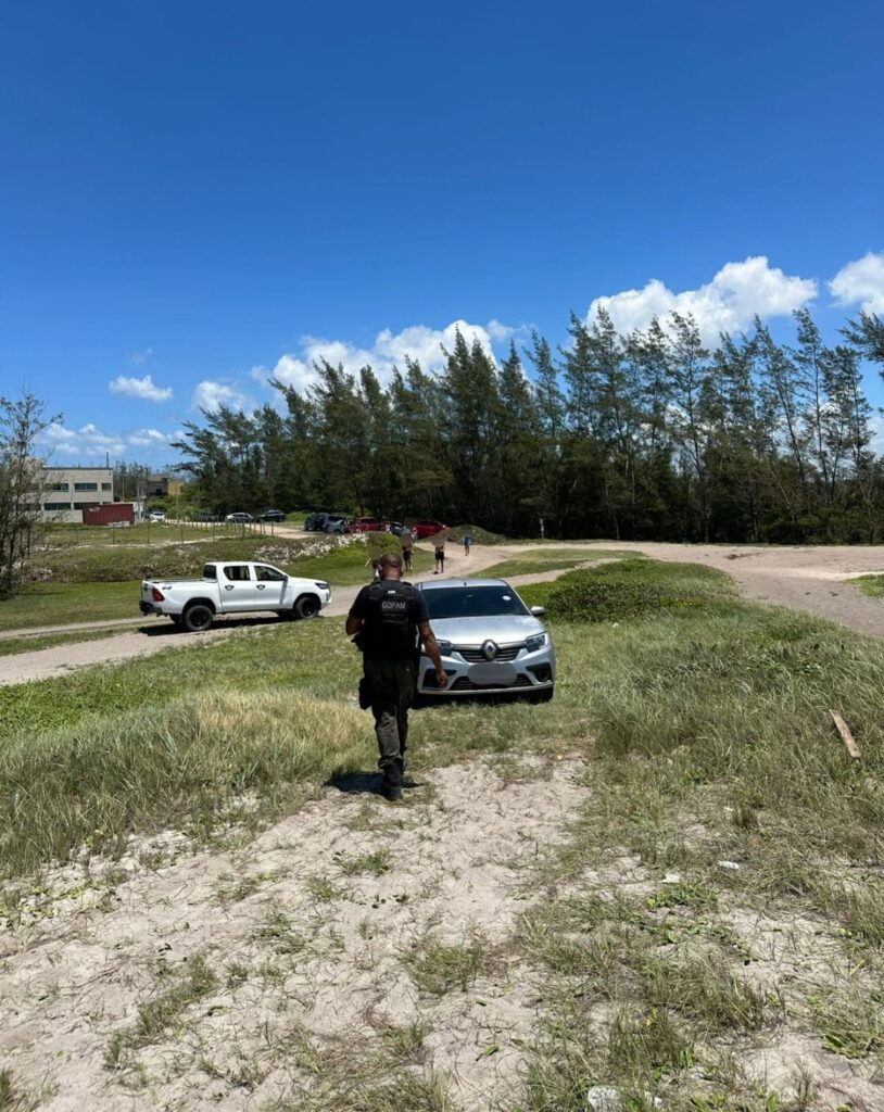 No domingo (15), durante ronda de rotina pela Praia do Pontal, a equipe do Grupamento Operacional Ambiental Marítimo (GOPAM), da Secretaria do Ambiente e Saneamento, passou pela localidade conhecida como Curvinha e identificou um veículo estacionado em local proibido, sobre a vegetação de restinga, na área de dunas.
