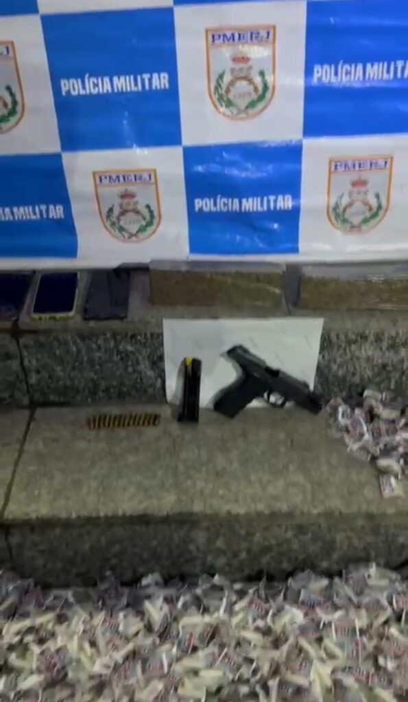 Todo o material e os acusados foram levados para à 118° DP de Araruama, onde foram autuados e presos em flagrante por tráfico de drogas e porte ilegal de arma de fogo