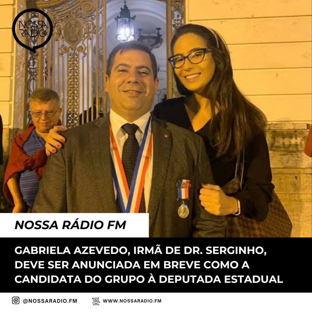 Deve acontecer em breve, leia-se nos próximos dias, o anúncio oficial do nome da médica Gabriela Azevedo, irmã do Prefeito de Cabo Frio Dr. Serginho, como Candidata a Deputada Estadual pelo Grupo.