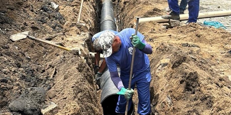 Na Rua Guriri, foram instalados 24 metros de tubo PEAD. A rede pluvial também passou por limpeza com uso de hidrojet, e cinco caixas de PV foram reconstruídas.